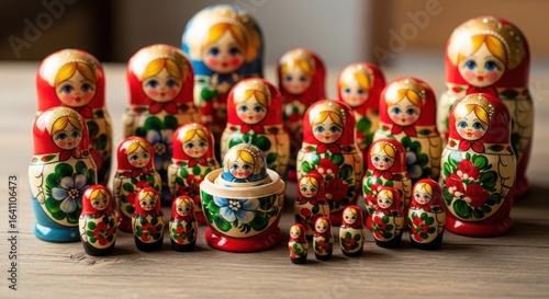 Vibrant Collection of Traditional Russian Matryoshka Nesting Dolls Displayed Together