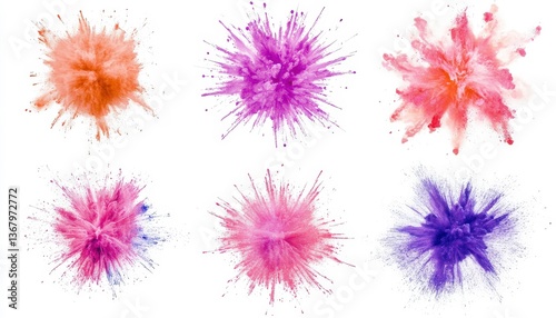 Vibrant Color Powder Explosions Isolated on White Background Six Unique Designs Perfect for Design Projects