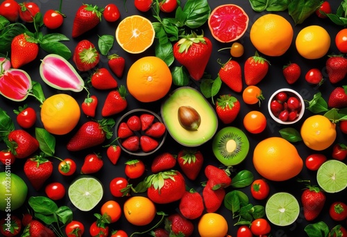 vibrant colorful flat lay featuring fresh organic ingredients assorted herbs wooden surface, arrangement, avocado, baking, bamboo, composition, culinary