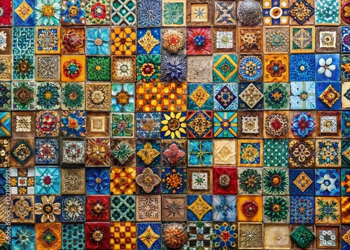 Vibrant Colorful Tile Mosaic Aerial View - Geometric Pattern Design