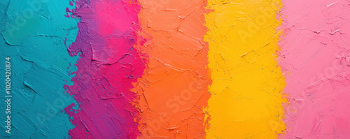 Vibrant colors blend together in stunning abstract mural, showcasing spectrum of hues including turquoise, pink, orange, and yellow. This artwork evokes sense of joy and creativity