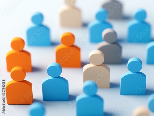 Vibrant community figures symbolizing social connection and diversity arranged on a sleek blue background : Generative AI