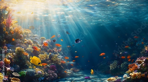 Vibrant Coral Reef Teeming with Colorful Tropical Fish in Serene Azure Waters