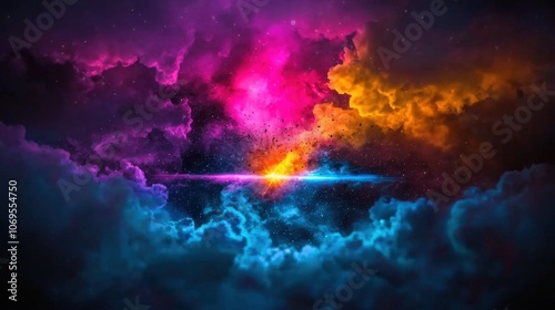 Vibrant cosmic explosion with colorful clouds and starry sky