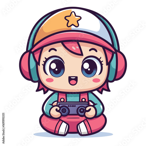 Vibrant Create Bold Stroke Kawaii Gamer Chibi With Joystic Creative Visual