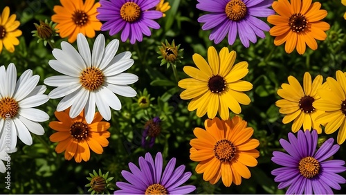 Vibrant Daisy Flowers White Orange Yellow Purple Bloom Garden image