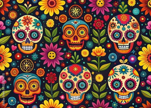 Vibrant Dia de los Muertos Seamless Pattern Design for Festive Celebrations