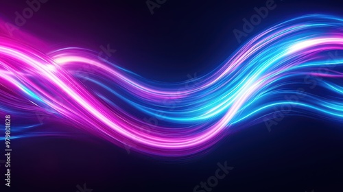 Vibrant digital wave with pink and blue lights, flowing gracefully against a dark background, perfect for technology and design projects.