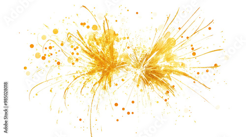 Vibrant fireworks bursting over a beach and night sky, splattered with colorful paint textures and grunge elements, creating a dynamic and artistic celebration