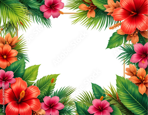 Vibrant Floral Frame PNG on Transparent Background, Transparent Bloom Border Arrangement, Botanical Spring Overlay, Colorful Flower Illustration for Invitation Designs