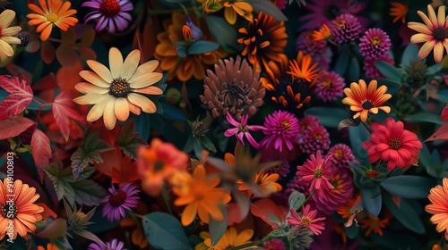 Vibrant flowers in diverse colors floral arrangement seamless pattern