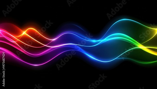 Vibrant, flowing rainbow light waves on black