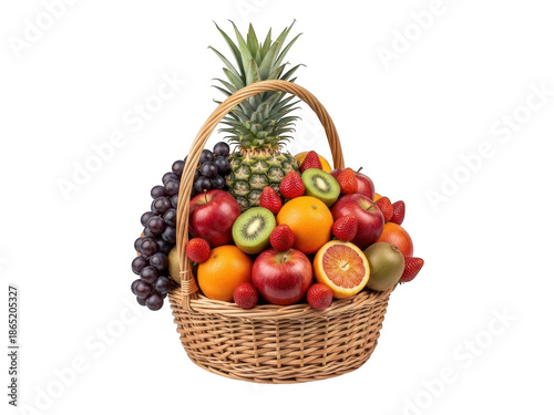 Vibrant fruit basket isolated on a transparent background