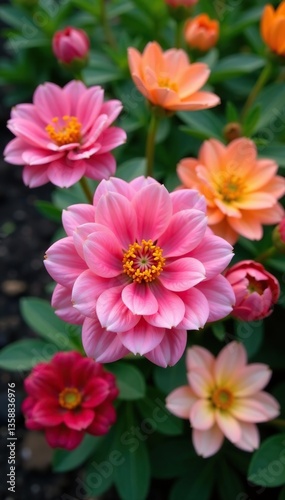 Vibrant garden flowers in full bloom shot up close, beautiful, detail