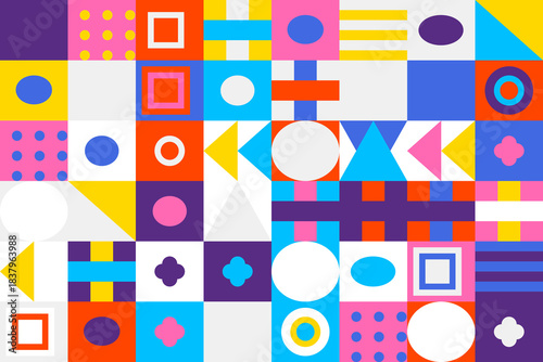 Vibrant geometric abstract pattern of shapes, modern, dynamic digital design