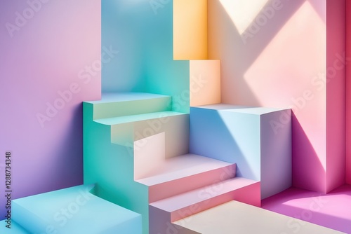 Vibrant Geometric Background with Soft Pastel Colors and Shadows