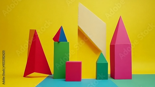 Vibrant Geometric Shapes on a Bright Yellow Background