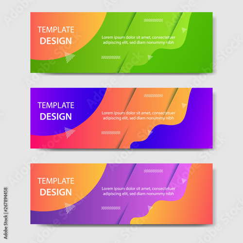 Vibrant gradient and modern futuristic fluid dynamic background template for headline and header banner in green, purple, orange color. Suitable for social media, web, blog, website.