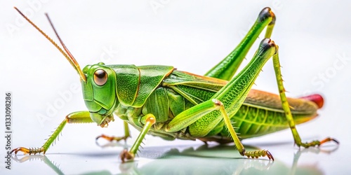 Vibrant Green Grasshopper Isolated on Pure White Background