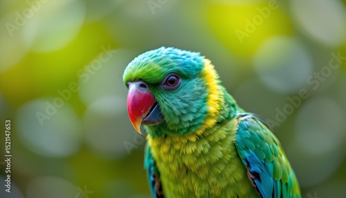 Vibrant Green Parrot Bird Close Up Vivid Feathers Tropical Wildlife Detailed Portrait