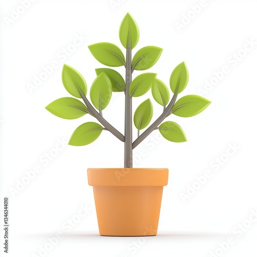 Vibrant Green Plant in a Simple Orange Pot with Fresh Leaves for Home or Office Decoration