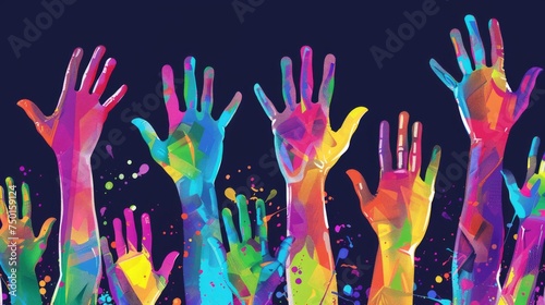 Vibrant Hands Raised in Celebration - AI Generated Illustration Generative AI