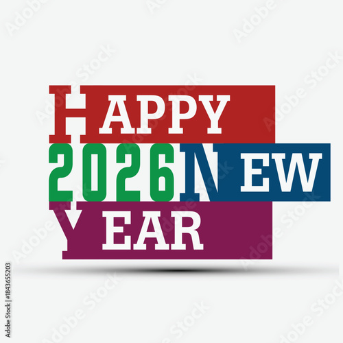 Vibrant horizontal stripes announcing happy new year 2026 with bold white text design