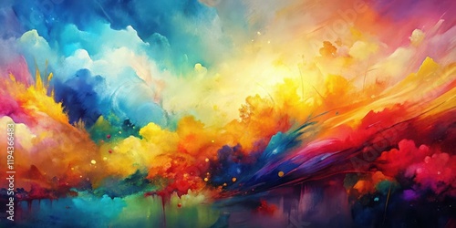 Vibrant Hues of an Imaginary Sky A Colorful Abstract Painting Featuring Swirling Clouds and Dynamic Brushstrokes Depicting a Serene yet Energetic Atmosphere