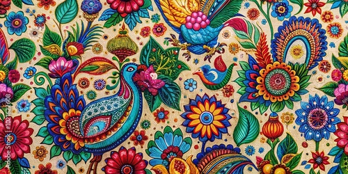 Vibrant Indian Print Fabric with Intricate Patterns Perfect for Textile Design and Home Decor Projects