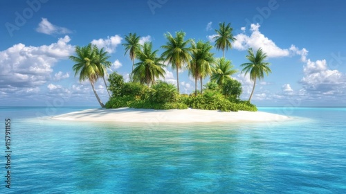 Vibrant Island Scene with Clear Blue Waters and Palm Trees