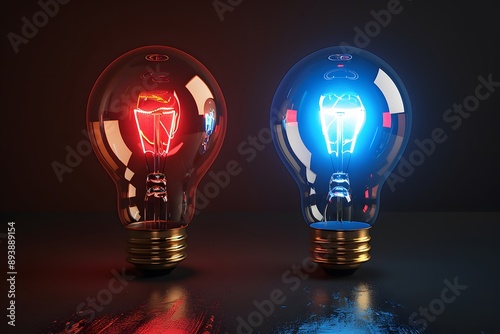 Vibrant Light Bulbs: Red and Blue Illuminations in a Dark Setting
