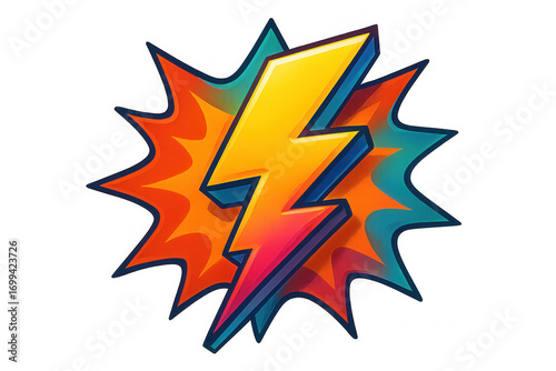 Vibrant lightning bolt striking with radiant starburst, symbolizing electrical power and dynamic energy against transparent backdrop