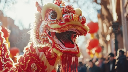 Vibrant Lion Dance Performance During Festive Celebration Parade