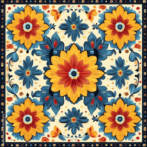 Vibrant Mexican Pattern with Traditional Colors and Geometric Shapes for Textiles, Fashion, and Decor