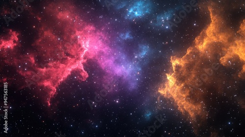 Vibrant multicolor starfield in deep space featuring a nebula and star clusters creating a stunning infinite outer space background in 3D render