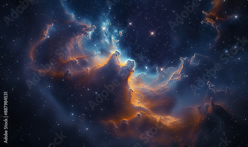 Vibrant Nebula in Deep Space with Twinkling Stars - Cosmic Clouds and Interstellar Dust - Stunning Galaxy Formation at Night