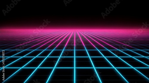 Vibrant Neon Grid, Retro Futuristic Digital Art