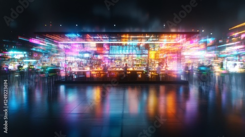 Vibrant night market display with neon lights and busy crowd in a futuristic urban landscape