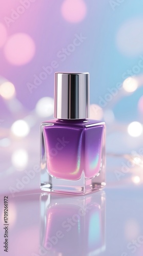 Vibrant Ombre Nail Lacquer Bottle with Dreamy Bokeh Background