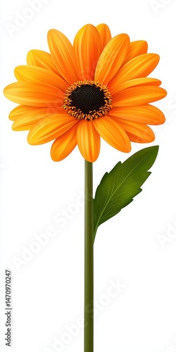 Vibrant Orange Gerbera Daisy on White Background