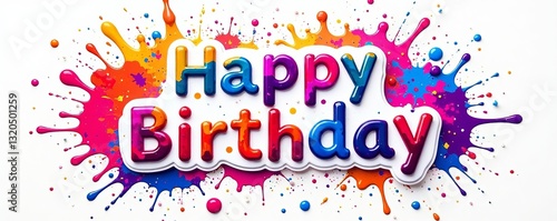 Vibrant paint splatter "happy birthday" message on white background, splattered, festive, colorful