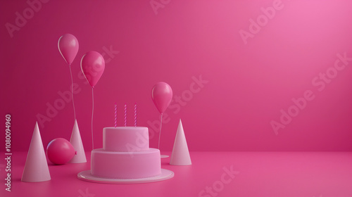 Vibrant Pink modern minimalistic interior background wall mockup 3d render