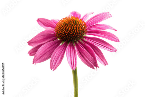 Vibrant Pink Echinacea Flower Isolated on White Background