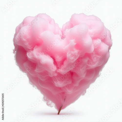 Vibrant Pink Heart Cotton Candy Against Stunning White Background