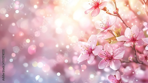 Vibrant pink sakura blossoms and blooming cherry trees in april springtime orchard on a sunny easter day, floral nature scene with blurred abstract background, beautiful spring landscape