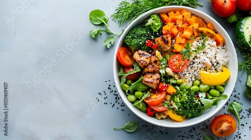 Vibrant plant based meal featuring fresh vegetables grains and legumes presented in stylish eco friendly serving bowls for a healthy sustainable dining experience