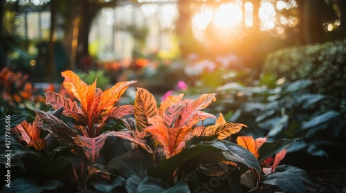 Vibrant Plants in a Natural Garden Setting at Sunset