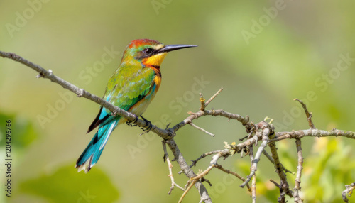Vibrant Rainbow Bee-eater Bird on Branch