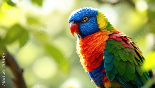 Vibrant Rainbow Lorikeet in Lush Green Foliage