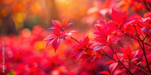 Vibrant Red Autumn Foliage Close-Up Featuring Detailed Leaf Structure and Soft Bokeh Background